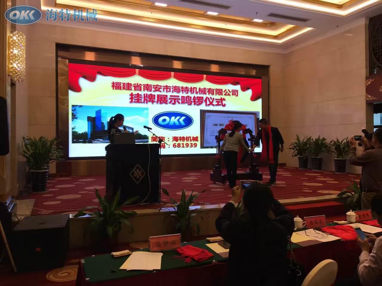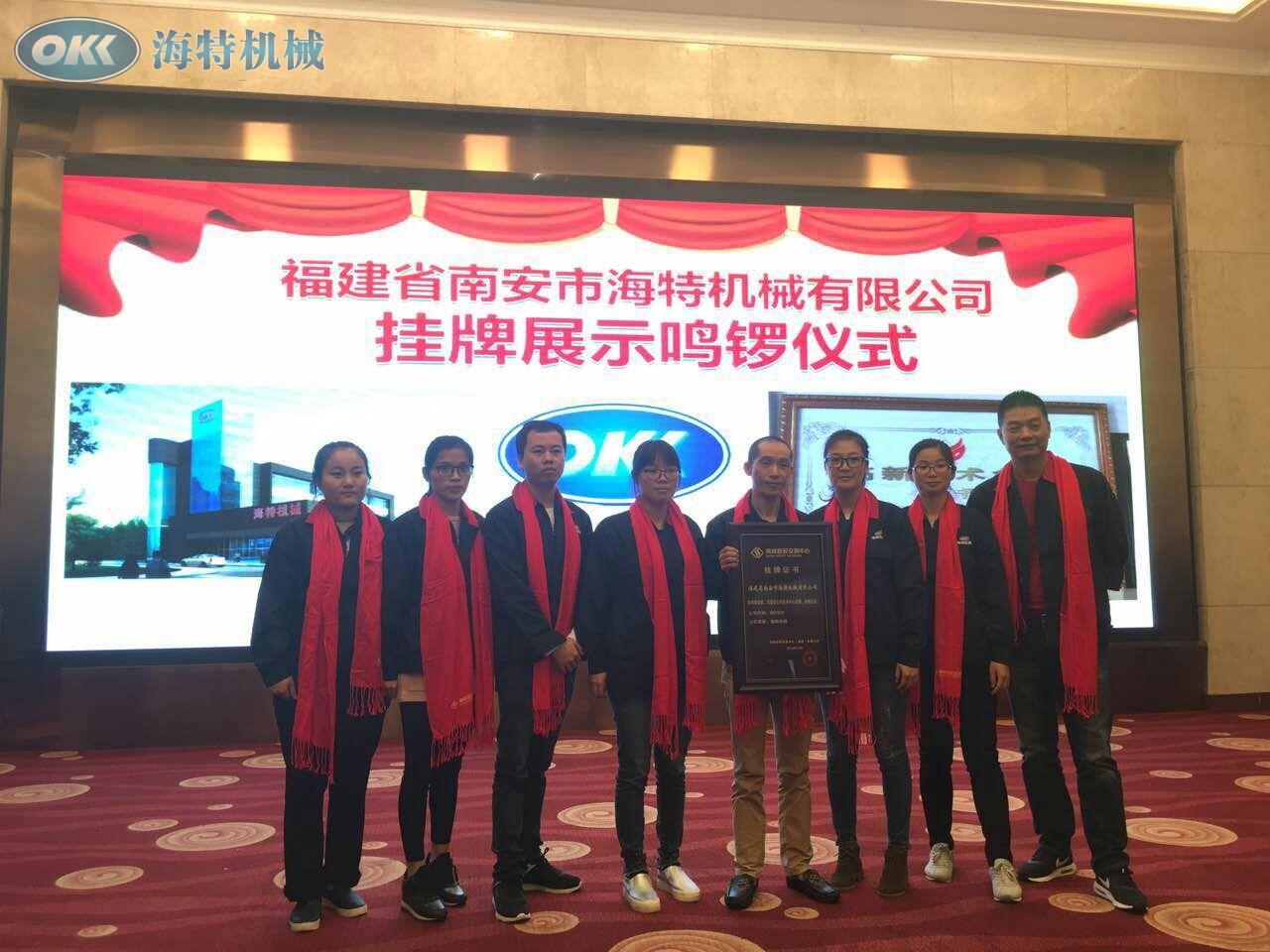 2016年11月22日,泉州首批科技型創(chuàng)客企業(yè)在海峽股權(quán)交易中心集體掛牌,海特機(jī)械董事長劉海濱上臺鳴鑼,響徹的鑼聲標(biāo)志著海特機(jī)械正式與資本的對接,意味著企業(yè)進(jìn)入了更為多元和便捷的融資平臺,供助這一平臺獲得更多的優(yōu)勢資源。