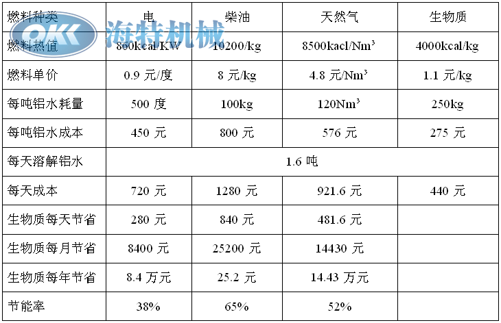 以一臺(tái)280噸壓鑄機(jī)為例,每天24小時(shí)生產(chǎn),一天出4000模;每模為400g計(jì)算;每天消耗鋁水1600kg;以每月工作30天,每年工作300天計(jì)。各種燃料所需成本對(duì)比: